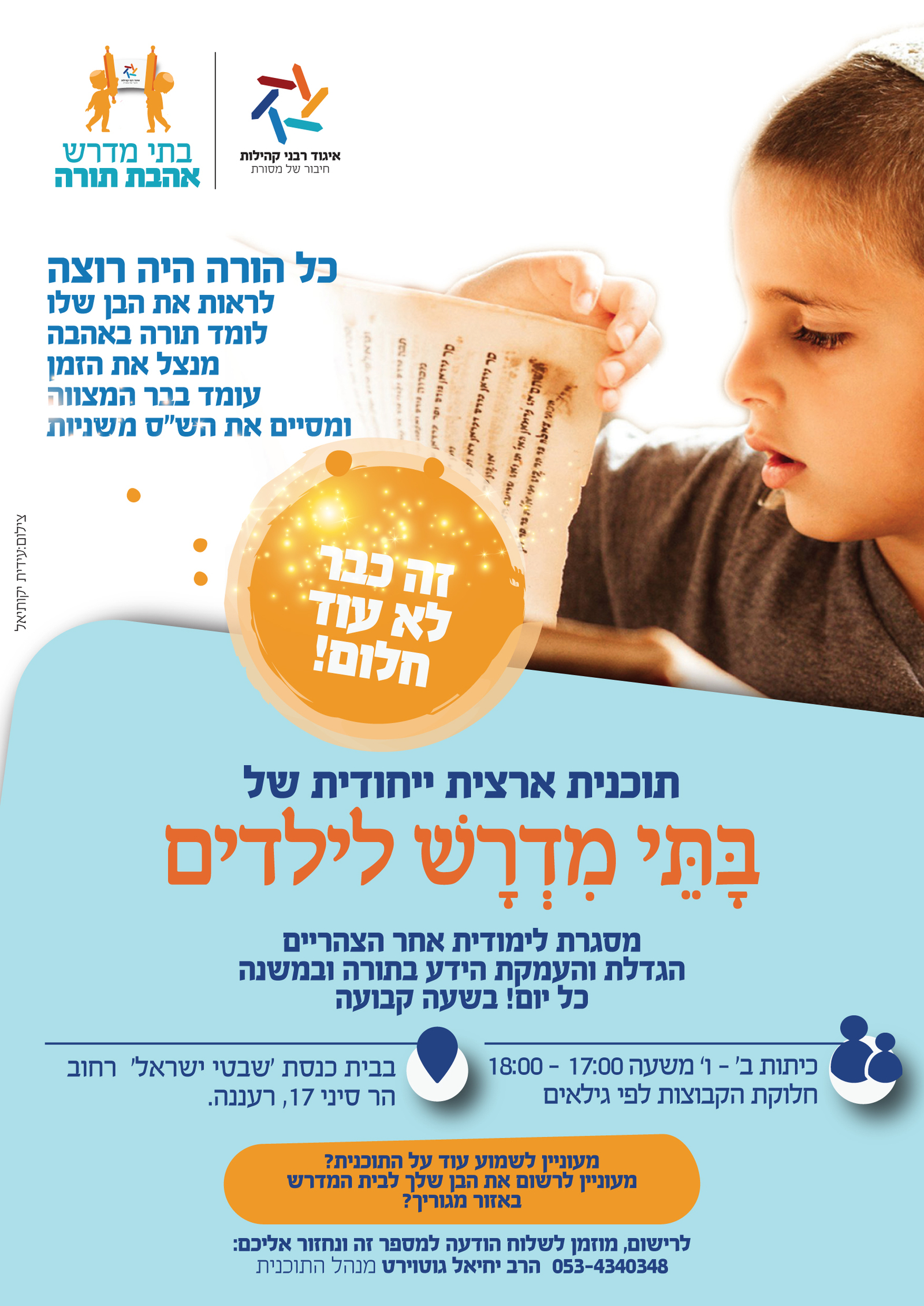 אנו שמחים מאד על הצטרפותכם לבית המדרש לילדים